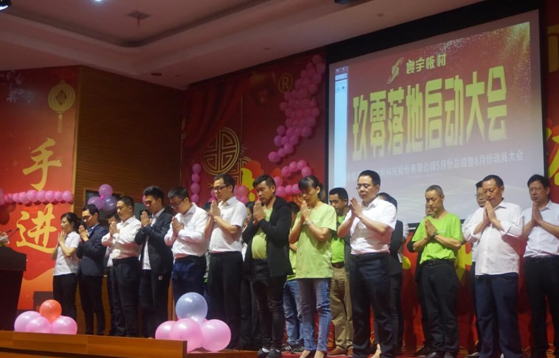 玖零的落地起航,從一個(gè)企業(yè)的文化開始,活動(dòng)的開始由寰宇家人展示晨會(huì)文化,大家動(dòng)作整齊劃一,齊聲祈禱: