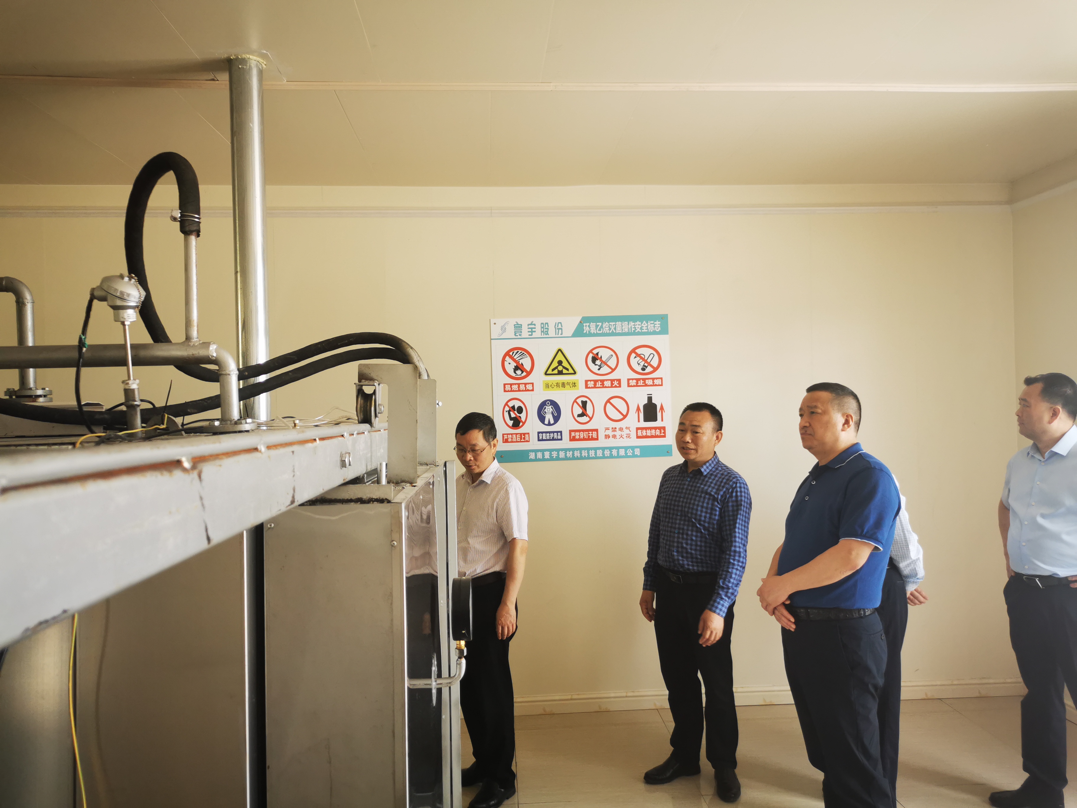 5月12日,市委副書(shū)記陳恢情帶領(lǐng)高新區(qū)、市發(fā)改委、工信局、商務(wù)局等部門(mén)負(fù)責(zé)人到湖南寰宇新材料科技股份有限公司調(diào)研指導(dǎo)工作。