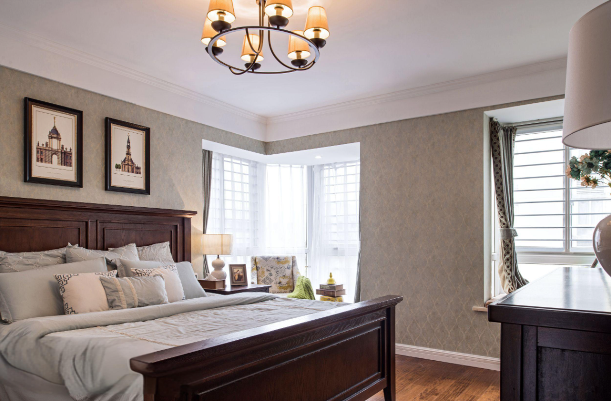 美式風格相比北歐風,顏色上更加多元化,色彩也更深,但是深色多體現(xiàn)在軟裝家具上,背景色還是多以淺色系為主。只是這個淺色系的顏色更加多樣,不再僅僅是白灰。